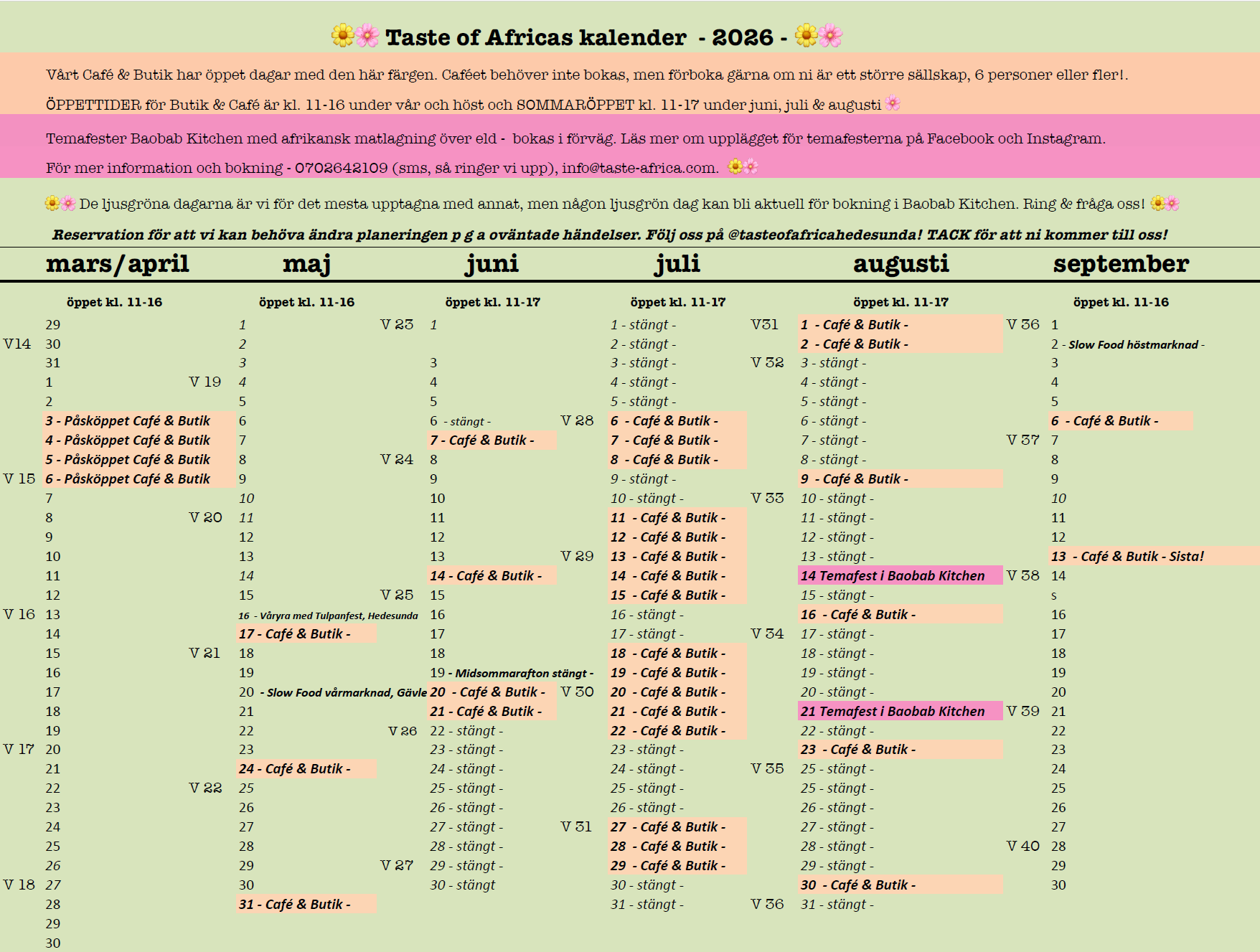 Det var i maj 2005 vi öppnade vår lilla Gårdsbutik och det är fantastiskt att vi, med er hjälp, har drivit och utvecklat vårt lilla företag så länge! Ni som vill veta mer om hur vi började, följ oss på sociala medier Instagram och Facebook (där heter vi @tasteofafricahedesunda), så kan ni se bilder och höra hur det gick till.